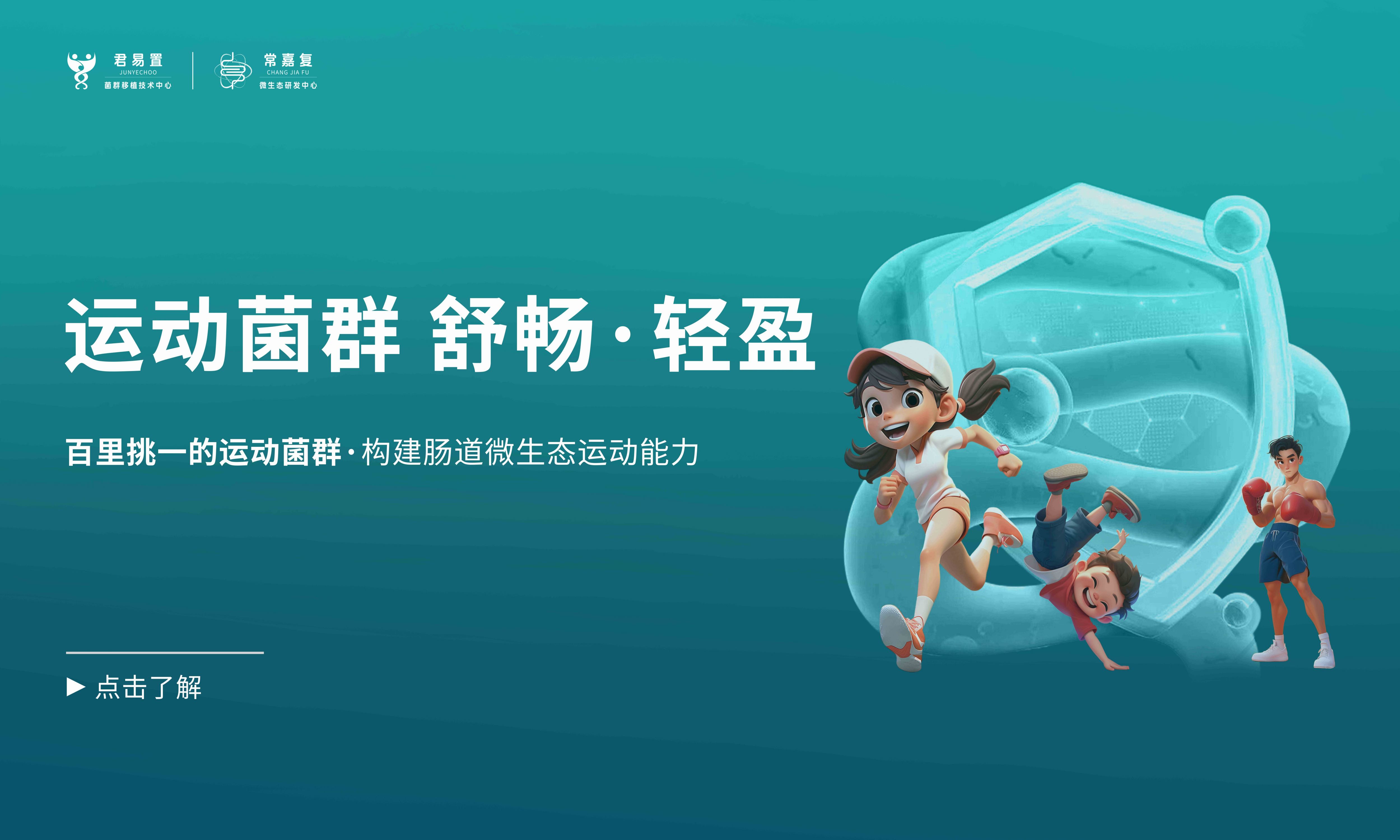 君易置生物科技是一家集臨床和基礎研究、S·FMT?運動菌群移植技術服務及微生態產品和方案研發為一體,專注于人體腸道微生態能力建設和個性化康復的高新技術企業 。公司秉承“腸運動,常健康”的核心理念,以“運動菌群 舒暢·輕盈”為研發邏輯,嚴選具有“運動菌群特征”的優秀供體,研發調配促進菌群定植的定植伴侶,致力于通過科學調配菌群定植配方,提升患者的腸道微生態運動能力,實現疾病預防與治療。